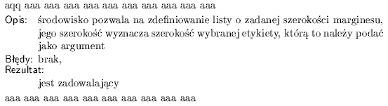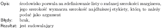 \item[Opis] �rodowisko pozwala na zdefiniowanie listy o zadanej szeroko�ci