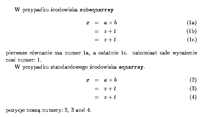 subeqnarray, analogicznego do eqnarray, ale kolejne