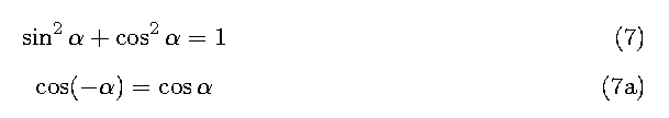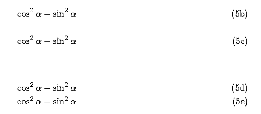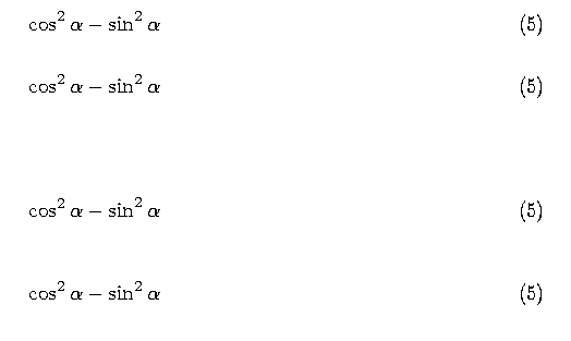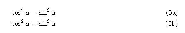 \cos ^2 \alpha - \sin ^2 \alpha \eqreqno[10pt]{Demo0}\nonumber\\