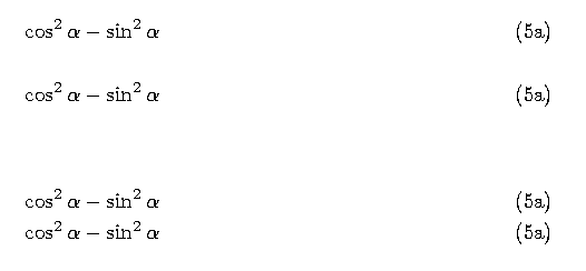 \cos ^2 \alpha - \sin ^2 \alpha \reqno{Demo1}\label{Demo6}