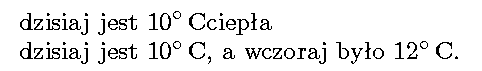 dzisiaj jest 10\ccC,